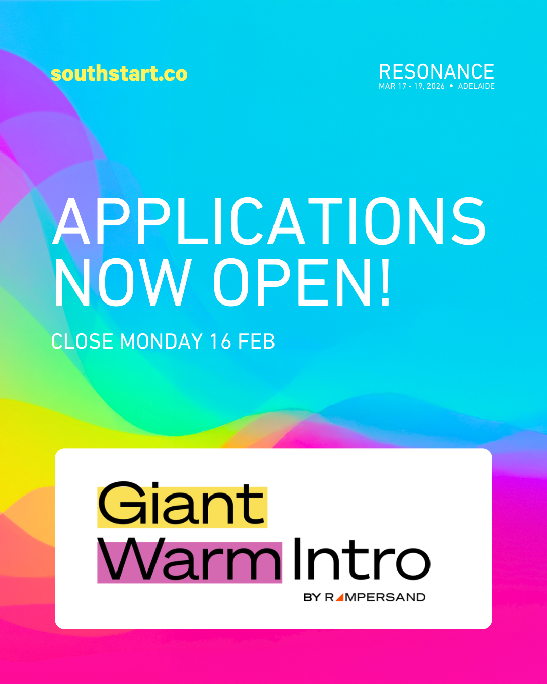 We’re teaming up with SOUTHSTART as a Community Session Partner to bring a special edition of the Giant Warm Intro (GWI) to Adelaide in March 2026